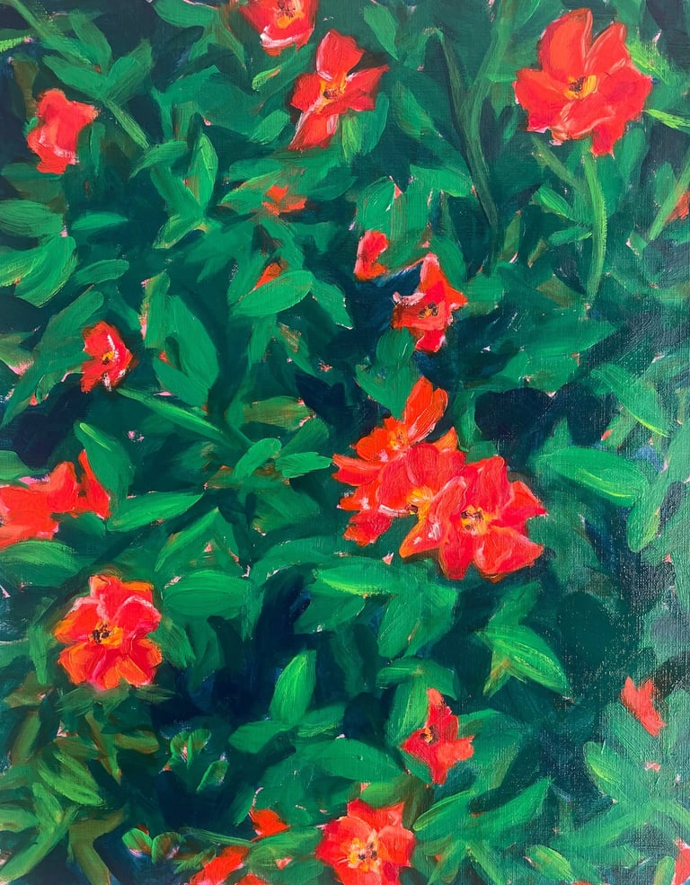 Peindre les fleurs comme une invitation à s’extraire de nos courses effrénées et prendre le temps de contempler la beauté du Monde, son ambivalence et ses mystères.Traverser les chagrins et les joies, à l’écoute des battements de son coeur.